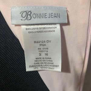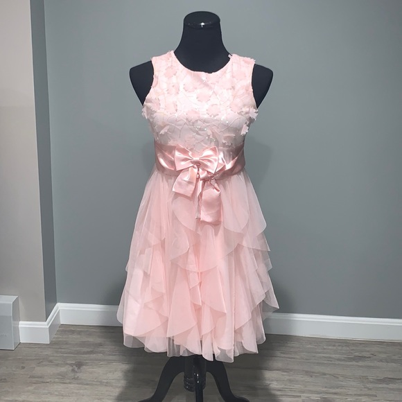 Light pink flowly dress. Zippers in the back, with design and bow in the center on the front. Worn only once, perfect condition.