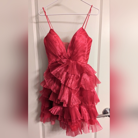 Hot pink dress with ruffles. Brand new. Never worn. Size xsmall