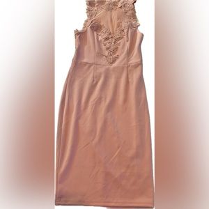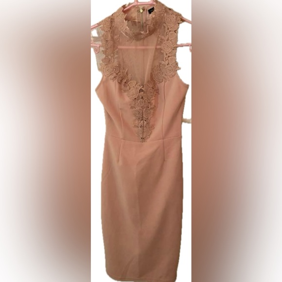 Pink dress purchased from boutique. material is stretchy has sheer mesh in the front and back with lace details.