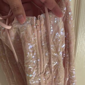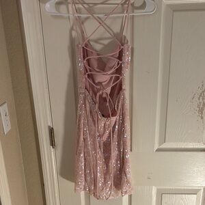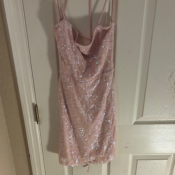 Elegant pink dress with shimmering sequins. Perfect for special occasions.