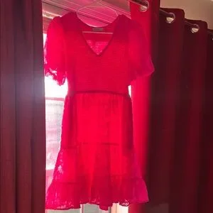 Charming pink lace dress perfect for any occasion. Features a delicate design with a comfortable fit.