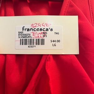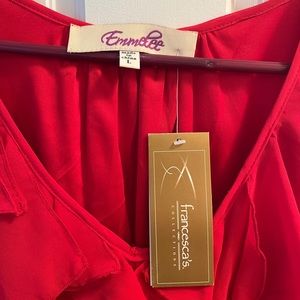 Pinkish Red dress with ruffles. Never been worn and has tags! Looks more red in the pictures but it looks more like a deep fuchsia in person.