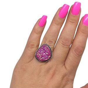 Add a touch of sparkle with this stunning pink druzy ring. Perfect for any occasion.