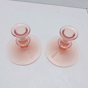 Pink Elegant Depression Glass Candlesticks Pair 4 inches