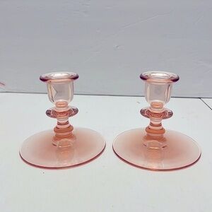 Here is a beautiful pair of Pink Elegant Depression Glass Candlesticks In fine condition with no damage.