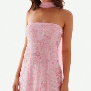 Pink Elegant Strapless Scarf sequin beaded Mini Dress
