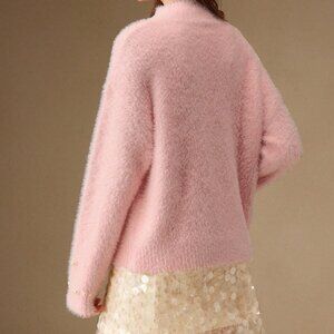 Elevate your wardrobe with this elegant pink velvet sweater, showcasing a French chic design. Featuring a regular fit, regular length, and stand collar, this pullover sweater has wrist-length sleeves and is perfect for adding a touch of sophistication to your casual look.