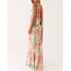 Pink Elegant Women's Floral Strapless Dress Y2k Backless Sleeveless Tube