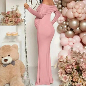 Pink Elegant Women's Maternity Off Shoulder Foldover Dress