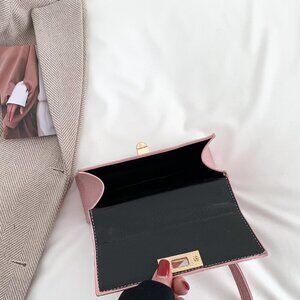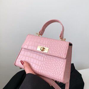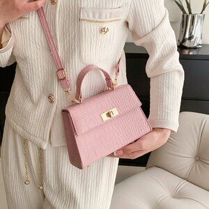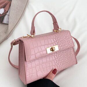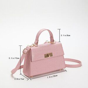 Pink Elegant Women's Mini Crocodile Embossed Twist Lock Flap Square Handbag