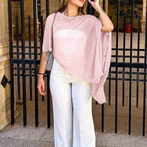 Pink Elegant Women's Oversized Knitted Shawl poncho knit top