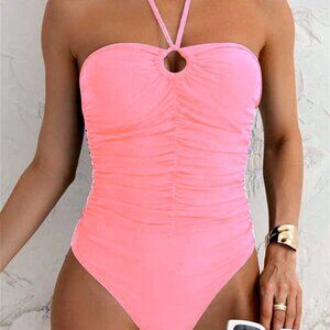 Pink Elegant Women's Slim Fit Front Tie One Piece Swim Suit