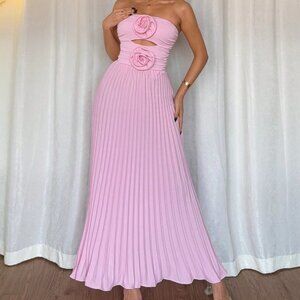 Pink Elegant Women's Strapless Minimalistic Casual Dress