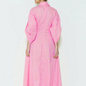 Pink Elegant Women's V-Neck Long Sleeve Maxi Dress with Flared Hem