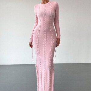 Pink Elegant Women's Warm Cinched Waist Knitted Dress