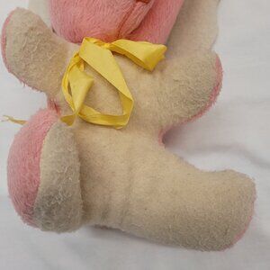 Vintage Carnival Prize Stuffed Animal Pink Elephant Toy Plush Raised Trunk 14 In.