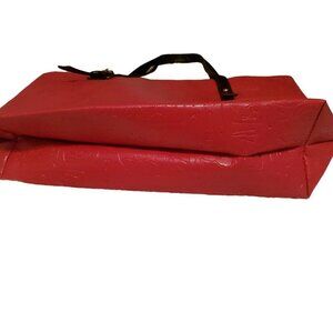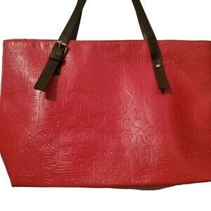 Pink Embossed Large Tote Bag With Faux Leather Brown Straps Gold Hardware