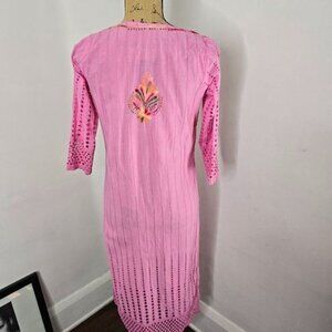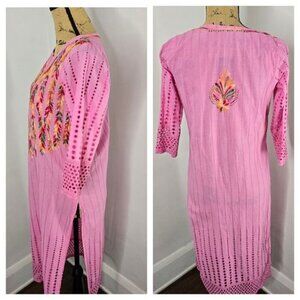DETAILS: Stunning embroidery on bright pink. high side slits. Eyelet cut out details. Embroidery on back.