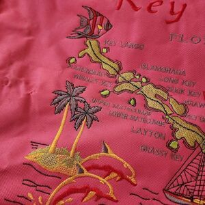 Pink Embroidered Key West Canvas Zippered Shopping Bag, 16" X 20" X 5" bag for have a spot or two and i did not try to get them out.