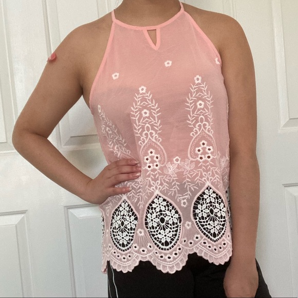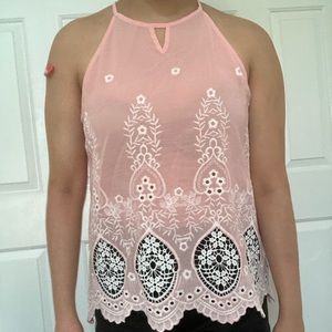 Pink Embroidered Lace Top