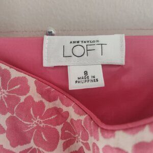 Playful, slightly retro Ann Taylor Loft midi dress with pink flower embroidery - this dress is in excellent condition. No stains, signs of wear and tear, etc.