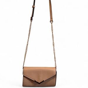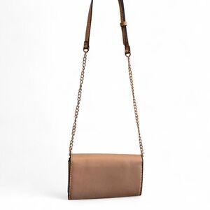 This elegant tannish/pink women's bag features a stylish chain strap, perfect for any occasion. Its sleek design and neutral color make it a versatile accessory for your wardrobe.