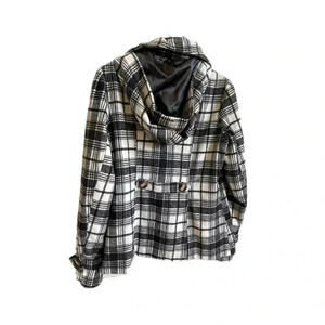 Pink Envelope Plaid Hooded Button Down Black and White Peacoat Junior’s Large