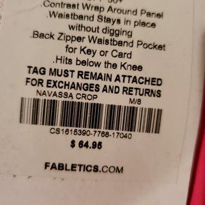 Cute black and pink athletic capris from Fabletics. Brand new. Zipper compartment in back. Moisture-wicking compression fabric.