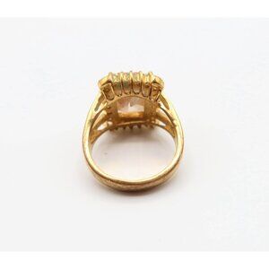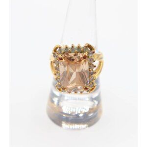 Pink Faceted Glass & Clear Rhinestone Cocktail Statement Gold Tone Ring Size 8