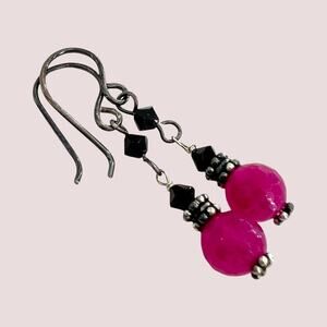 Pink Faceted Stone Drop Earrings on Sterling Silver Wires