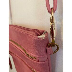Pink Faux Leather Crossbody Bag With Gold Zippers & Adjustable Strap