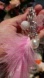 Elegant necklace featuring pink feathers and pearls, perfect for adding a touch of glamour to any outfit.
