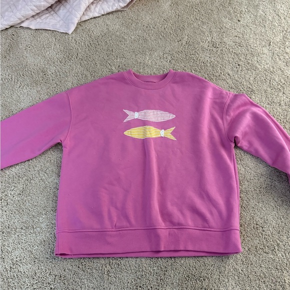 Cozy pink sweatshirt featuring a charming fish pattern. Only worn once, very comfortable.
