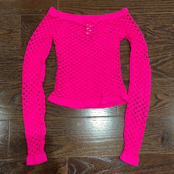 - hot pink fishnet top