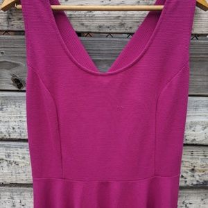 Fashion to Figure fuschia fit & flare dress. The straps of the dress come towards the center of the back where there is a fun bow at the top of the bodice. Side zipper with hook & eye closure. There is some slight pilling all over the dress from wear but here is plenty of life left in the dress!