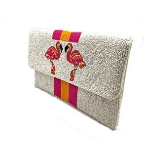 Pink Flamingo Bird Beaded Crossbody Chain Vacation Clutch Boho Handbag