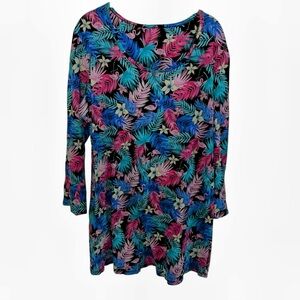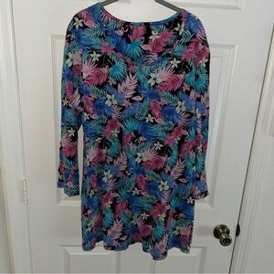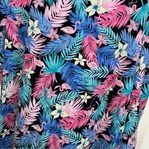 Pink Flamingo Blue Colorful Tropical Print Dress cotton long sleeve XL 33” long, 40” bust