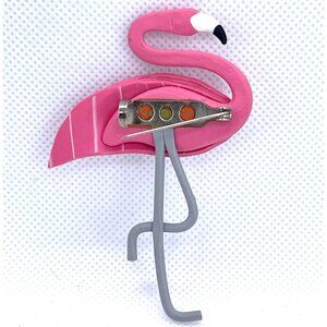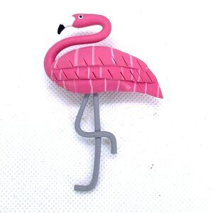 Precision-designed flamingo brooch crafted with meticulous attention to detail, offering a sophisticated accessory that captures the whimsical elegance of the iconic bird. Featuring a textured pink body, articulated gray legs, and a carefully sculpted form, this pin provides a refined touch to professional and casual attire alike.