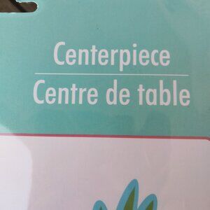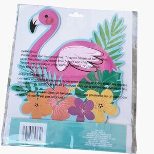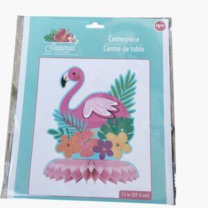 Tropical-themed centerpiece featuring a vibrant pink flamingo, floral accents, and lush greenery. Lightweight and easy to assemble for decorative use.