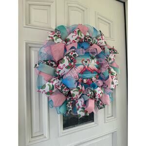 Pink Flamingo Deco Mesh Ribbon Tropical Spring & Summer Wreath Front Door Hanger