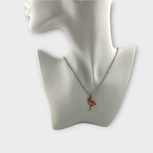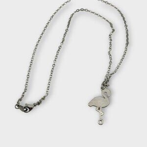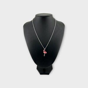 HANDCRAFTED pink flamingo enamel pendant necklace. Chain is diamond cut stainless steel and measures about 18" long. Brand new, never worn. Excellent condition. Great fun fashion to wear or as a gift giving.