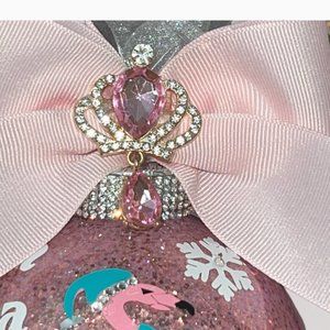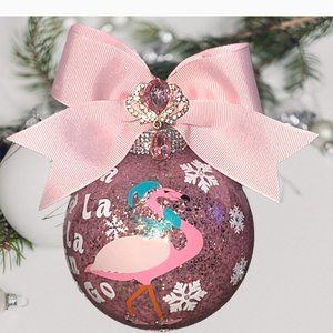 Pink Flamingo Glitter Christmas Tree Ornament, Customized Personalized, Holiday