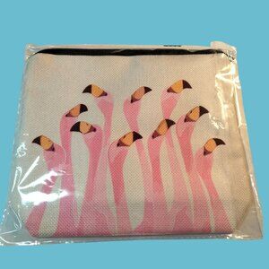 Pink Flamingo Makeup Bag Canvas Zipper Pouch Beachy Tiki Tropical