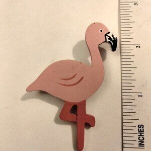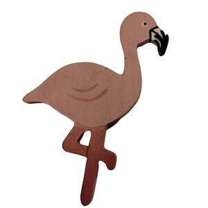 Pink Flamingo Pin Brooch Tropical Statement Coastal Tiki hand painted Wooden