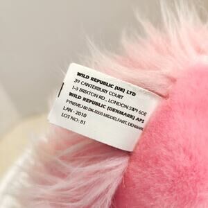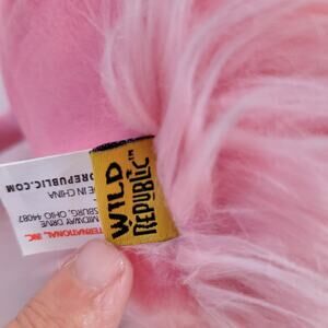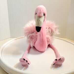 Wild Republic plush flamingo stuffed animal, approx. 17" in length. Features a fluffy pink body, soft plush neck, and dangling legs. Gently used and well cared for.