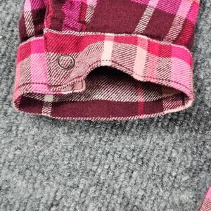 Pink Flannel Plaid Womens Size 7-9 Long Sleeve Shirt Button Tab Sleeve