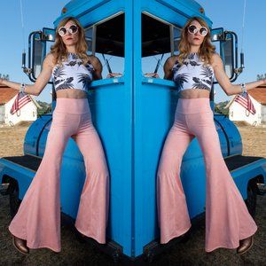 Elevate your style with these chic pink flare pants. Perfect for any occasion, these pants offer a flattering fit and a bold statement.