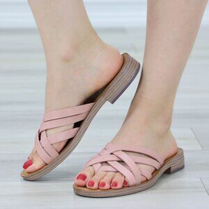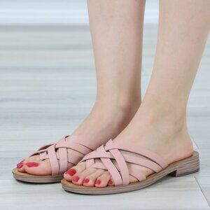 Pink Flat Slip On Sliders Sandal Strappy Trendy Comfort Lightweight