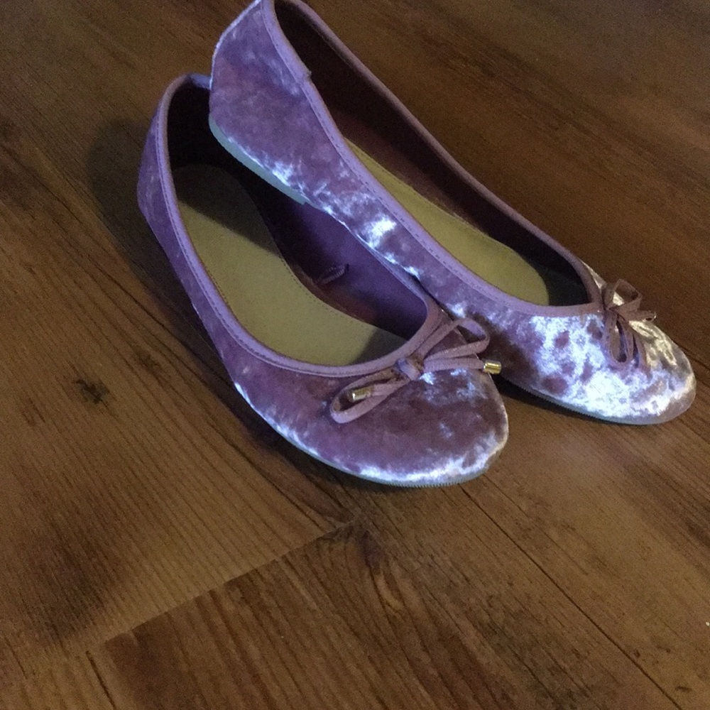 Pink velvet flats w/ pink and gold bows