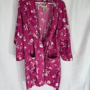 Fleece pink skull pattern mid length robe with front pockets and belt. cozy and cute. Brand is Thro, size S/M. MSRP $48